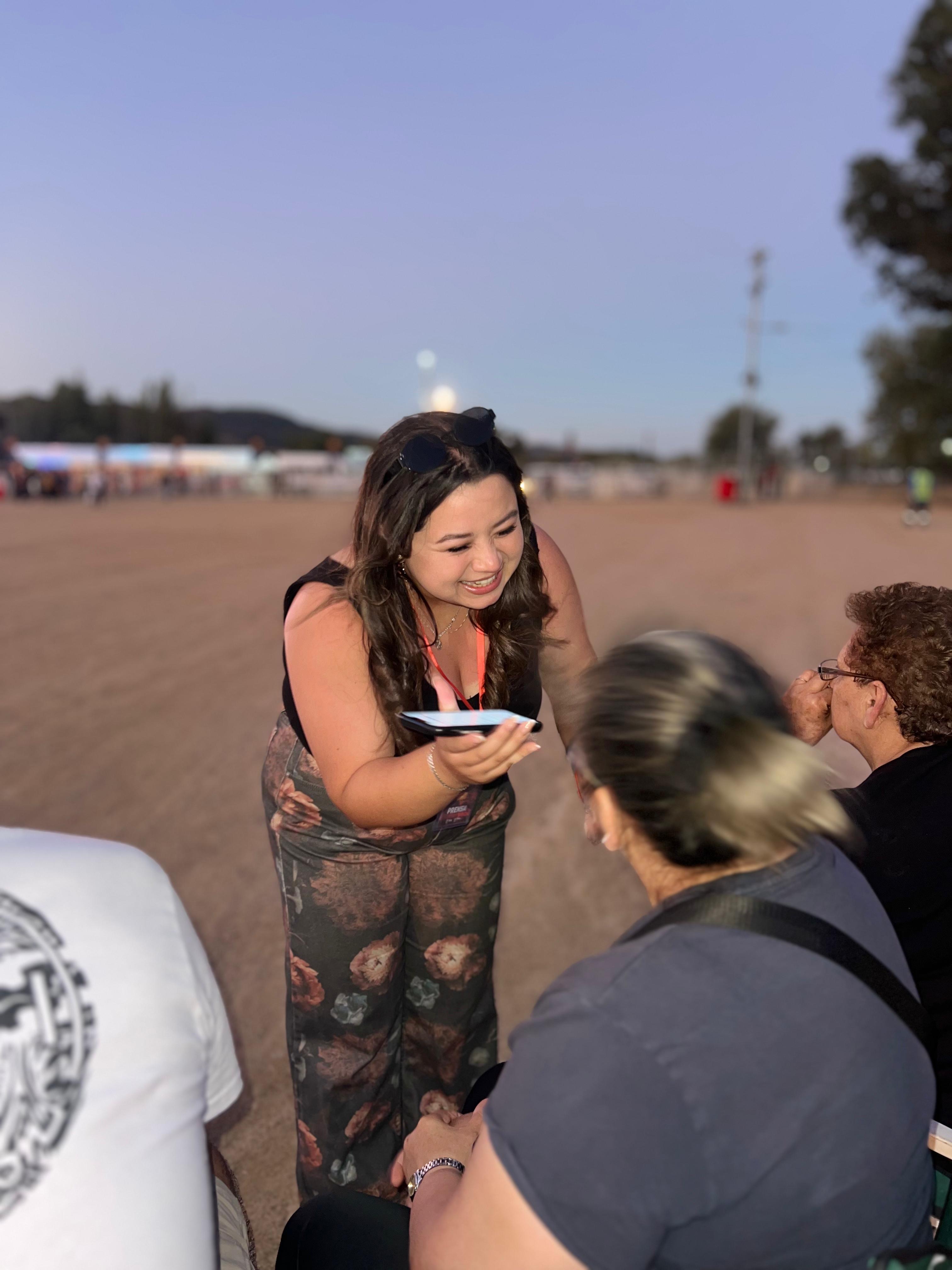 El ambiente se volvió más familiar cuando apareció Myriam Hernández. Muchos habían llegado por ella y se notaba. Lilyan Saavedra una fiel fanática de la cantante, comenta “Vengo a ver a mi querida Myriam que sigo desde toda la vida, desde que estaba en el programa de Don Francisco”. Para Susana, otra admiradora de la artista, fue aún más especial, “Lo viví muy bonito, muy lindo, porque la pude ver de cerca y porque ella es maravillosa”. Ambas reflejaban lo que pasaba en la explanada: familias enteras cantando canciones que reconocen desde hace décadas.